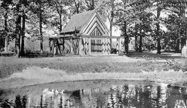 Die Alte Kapelle, hier aus den Anfangsjahren noch mit vor­ge­la­ger­ten Löschwasserteich.